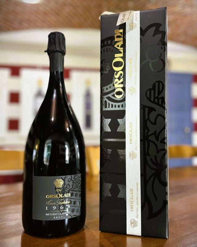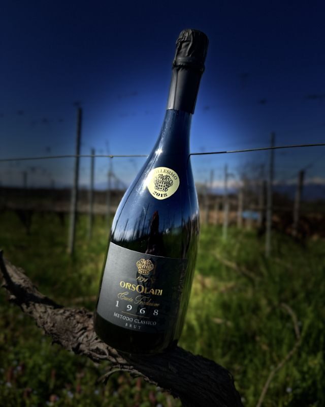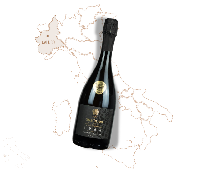Il 1968 indica l’anno della prima spumantizzazione di Erbaluce di Caluso avvenuta nelle nostre Cantine, mentre il colore dell’etichetta sottolinea il particolare invecchiamento di almeno 60 mesi. È stato nella primavera del 1968 che Francesco Orsolani ha coronato il suo sogno di produrre il primo Erbaluce di Caluso spumantizzato ed è stato il 29 settembre 1969 circa 18 mesi dopo, che lo presentò ad un gruppo qualificato di assaggiatori che ne decretò la qualità e la necessità di proseguire nella produzione, oggi, grazie a quella sperimentazione l’Erbaluce ha una importante denominazione di origine controllata e garantita anche su questa tipologia.